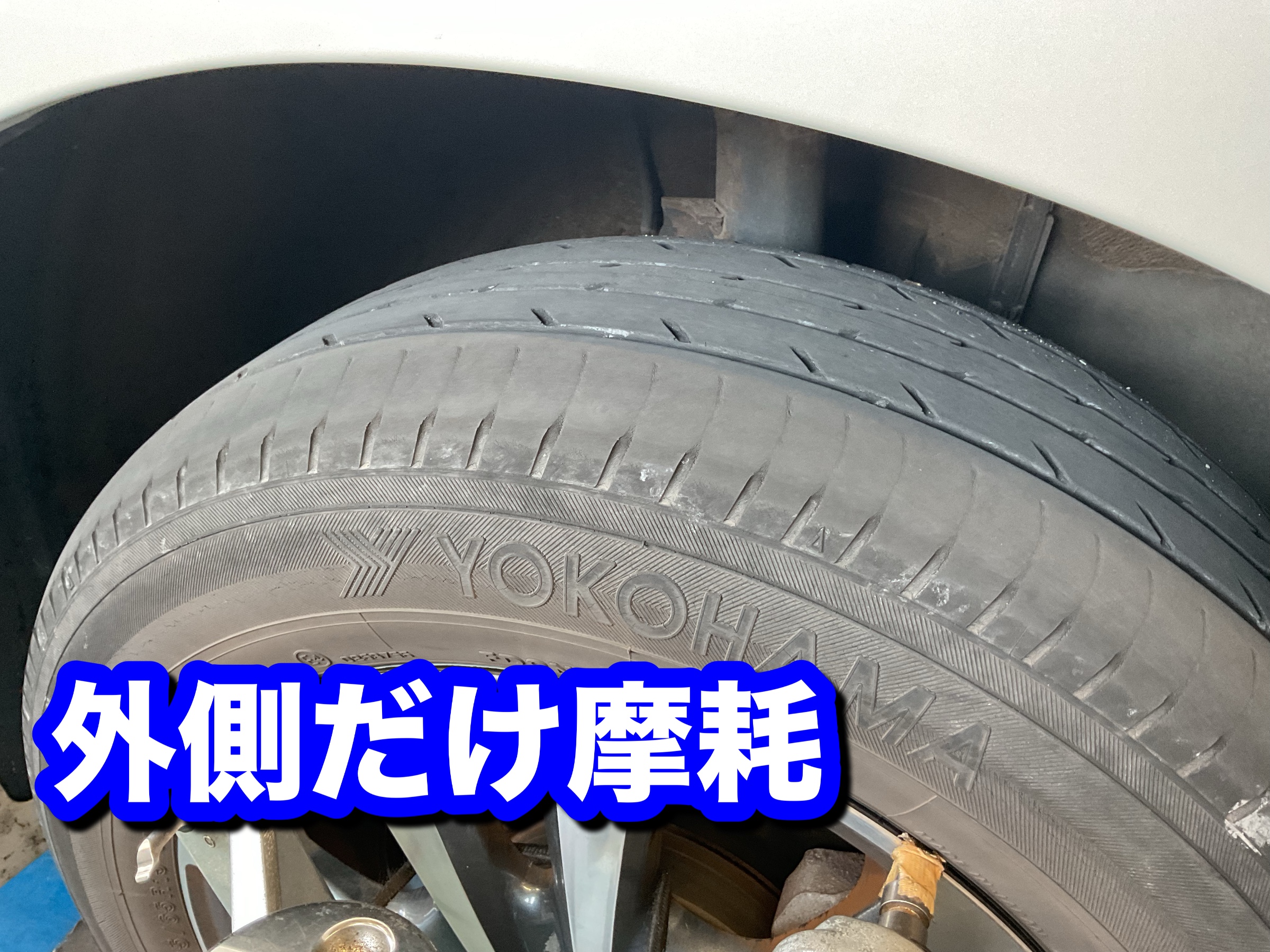お車のタイヤ、外側だけまたは内側だけが異常に減っていたりはしませんか?