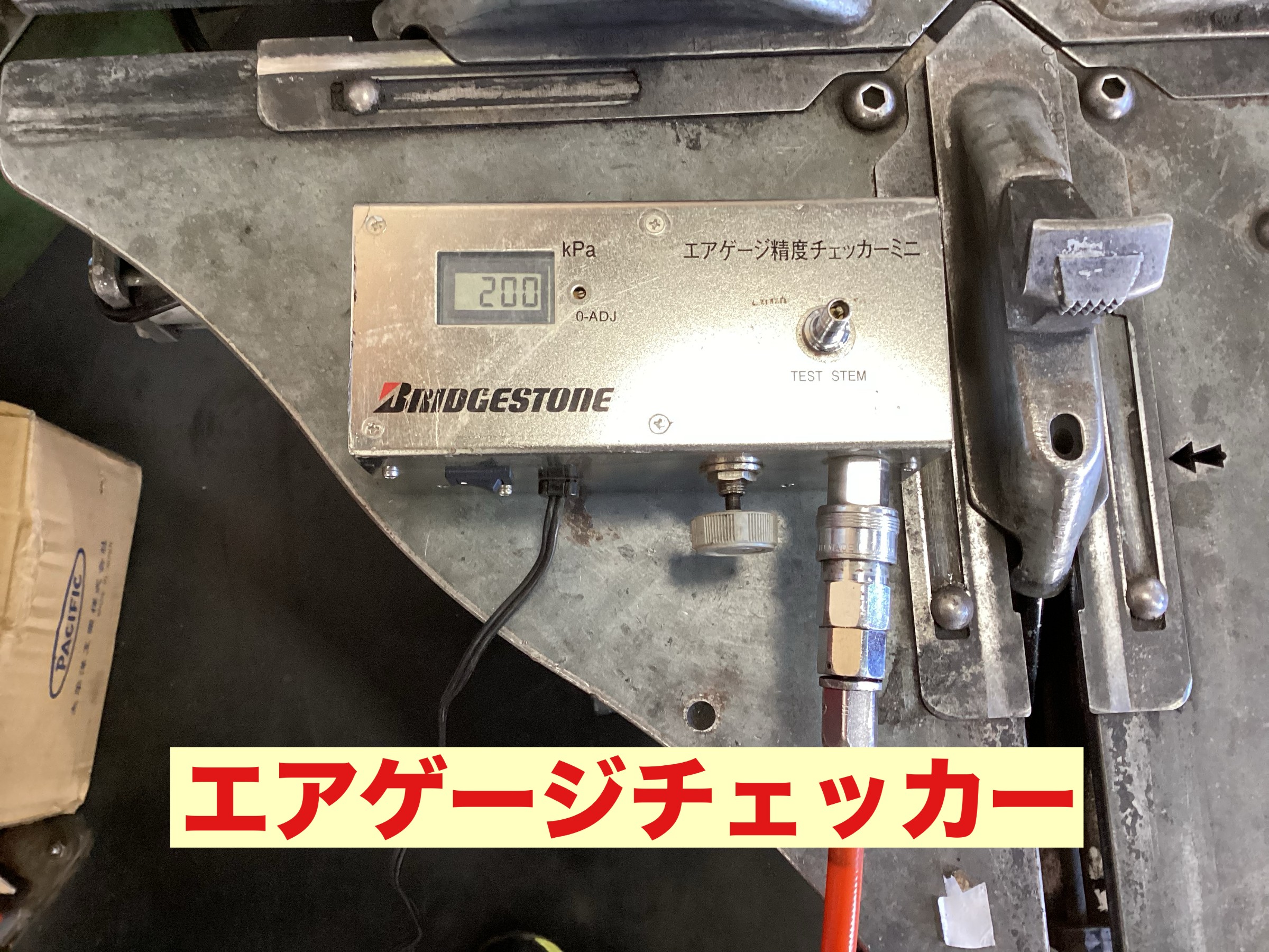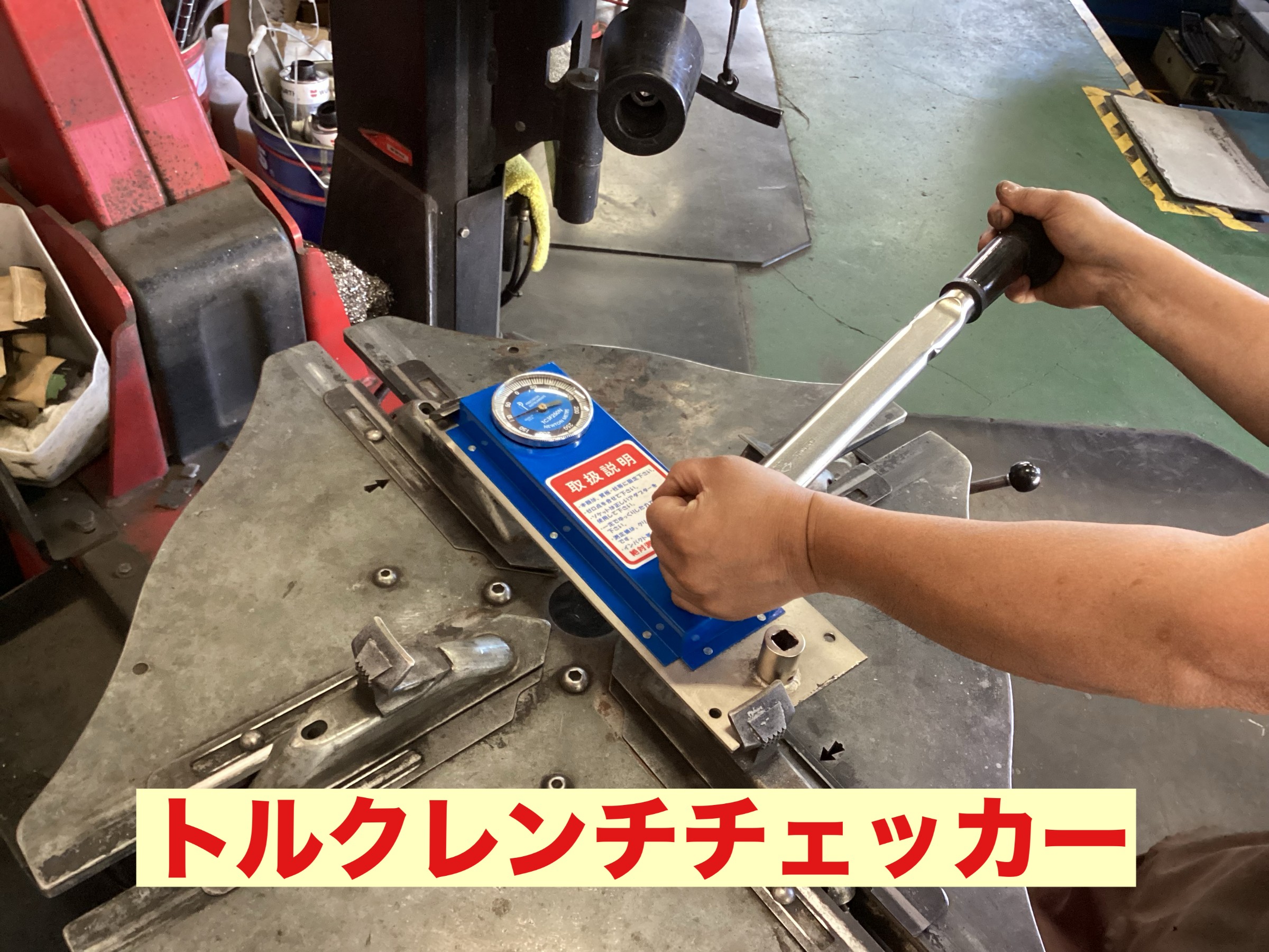店舗機材点検。トルクレンチ・エアゲージは定期的に点検しております。