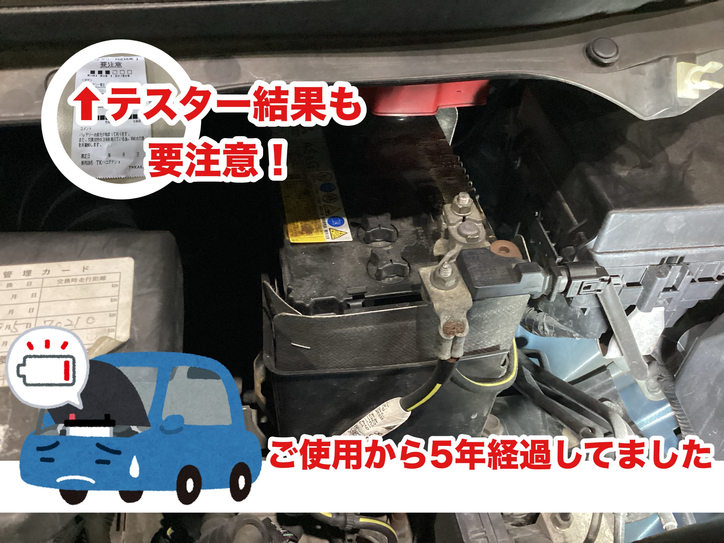 バッテリー製造年を見ても5年は使用されていましたので交換時期でした!
