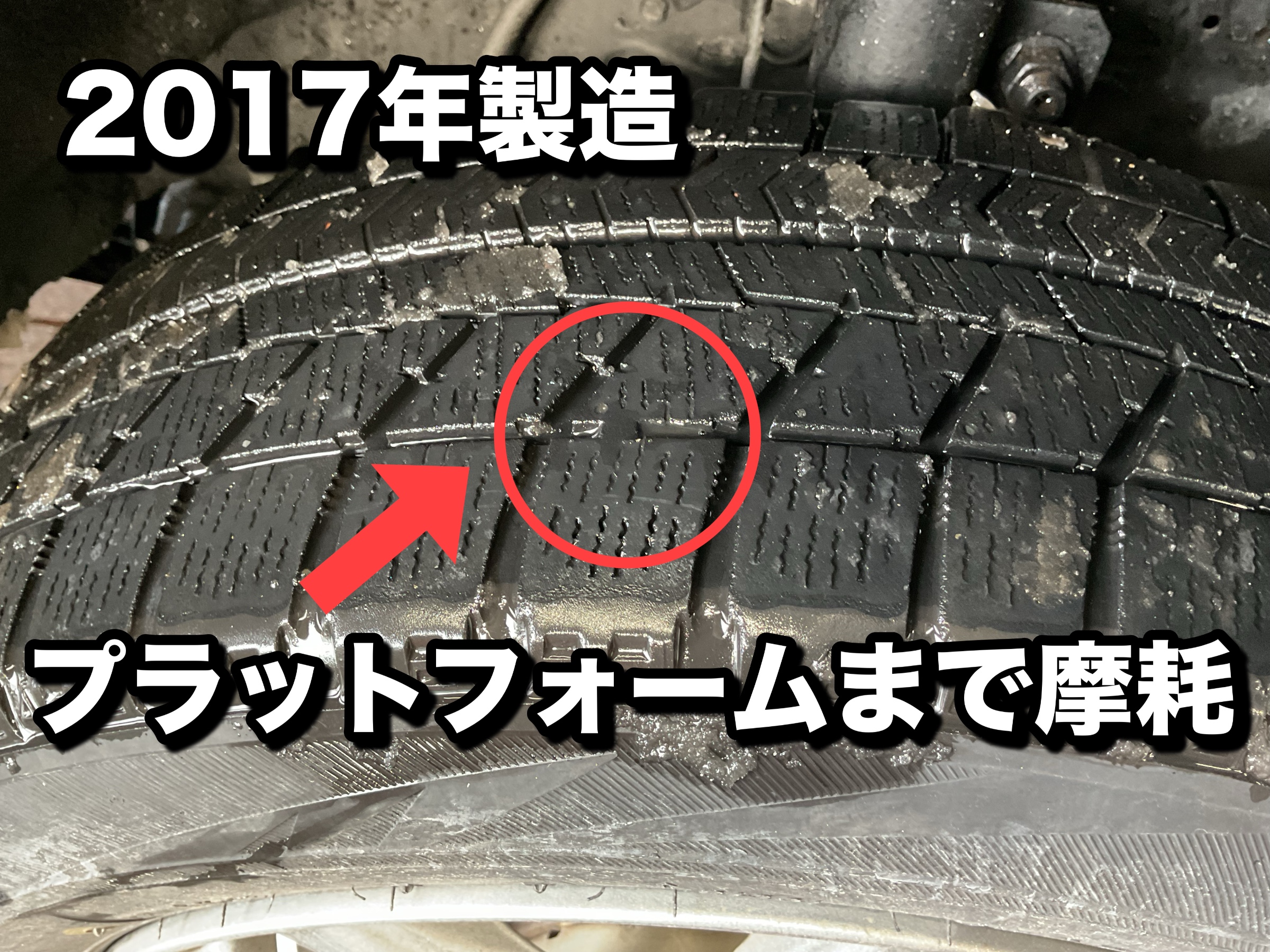 2017年製造のタイヤで、なんとプラットフォームがむき出しです。