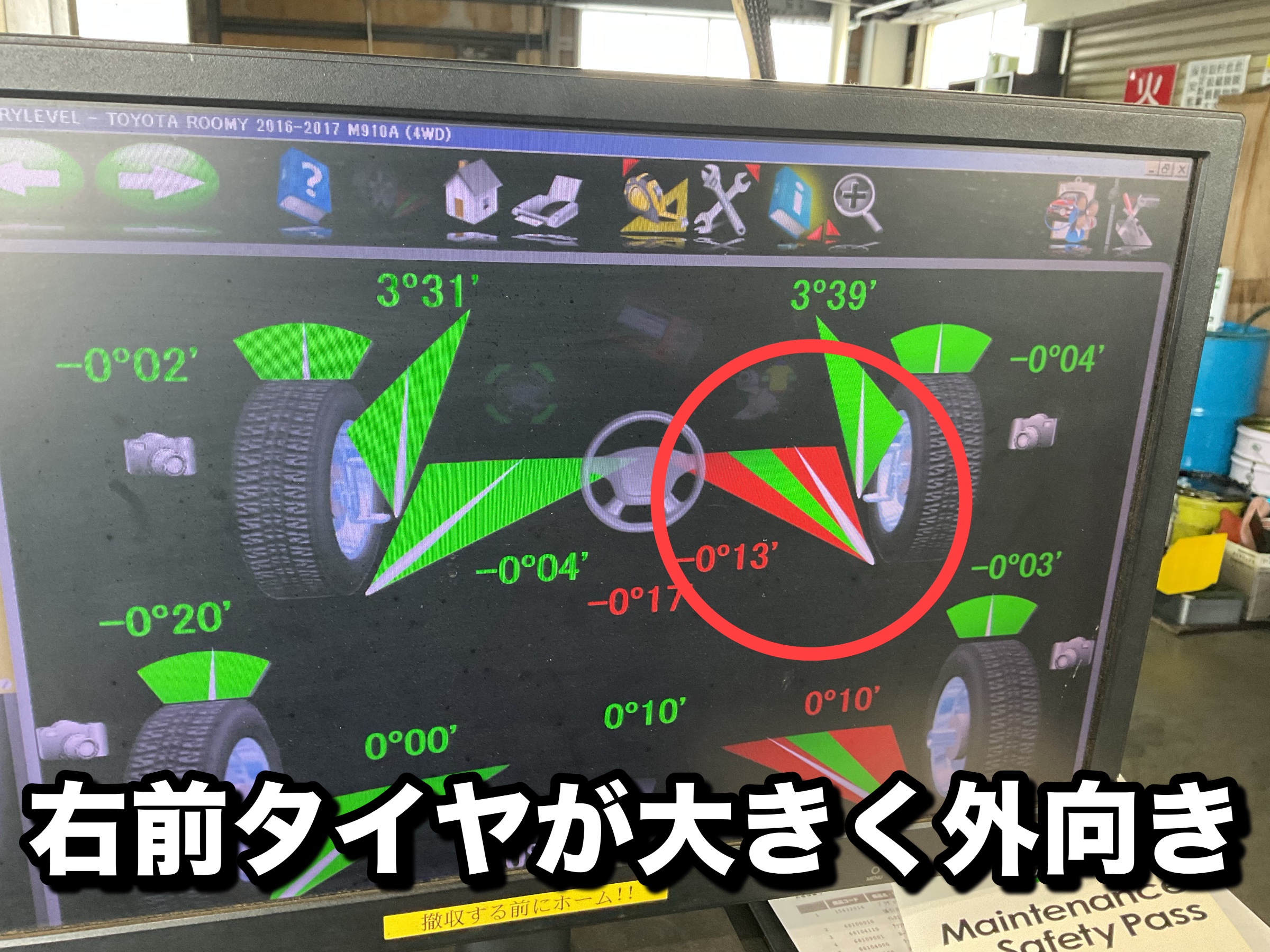 ↑フロントタイヤに片減りが見られたので、一緒にアライメント測定も実施しました!