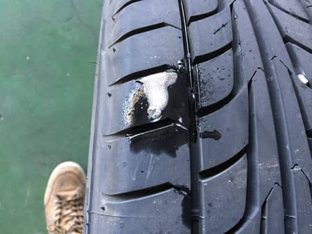 タイヤ・・・・ケガ(パンク)していました・・・・・・ (写真1)