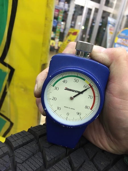 写真は当店照れ屋さんの「スズキ」がタイヤの硬度を測定している写真です。