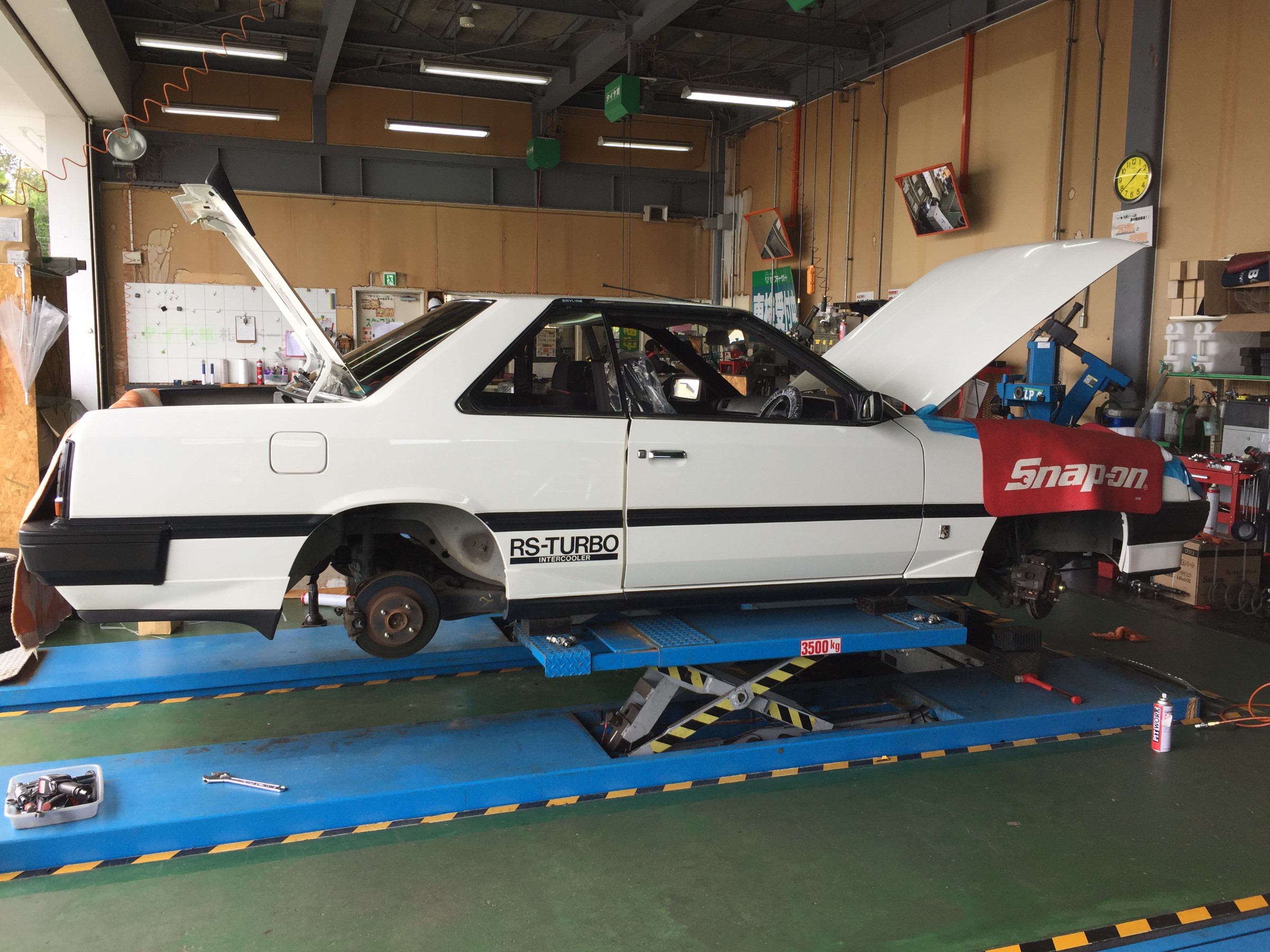 そんな中、スカイラインRS-TURBOがサス交換で入庫