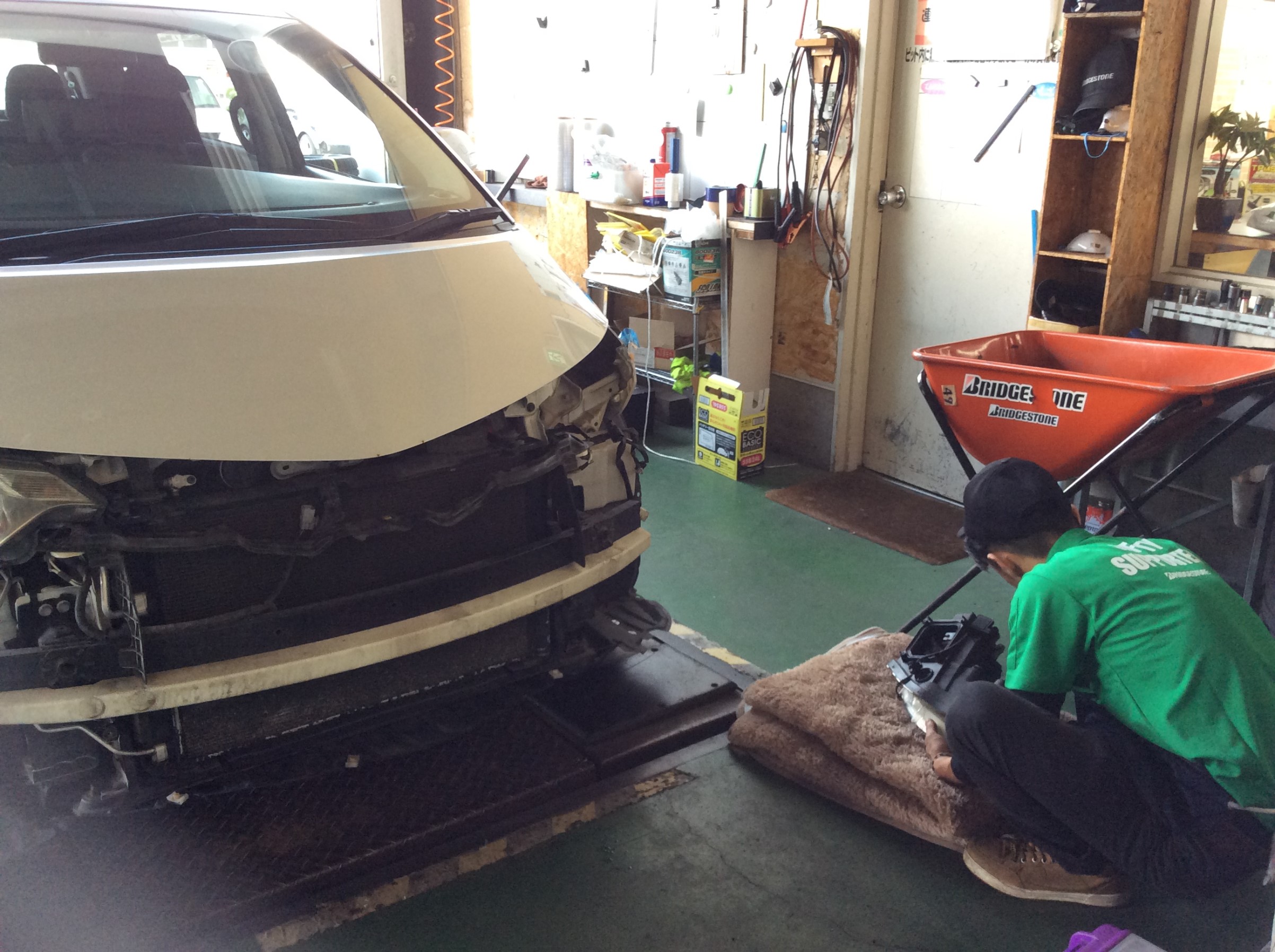 石崎さんがヘッドライトの交換をしているところです。
