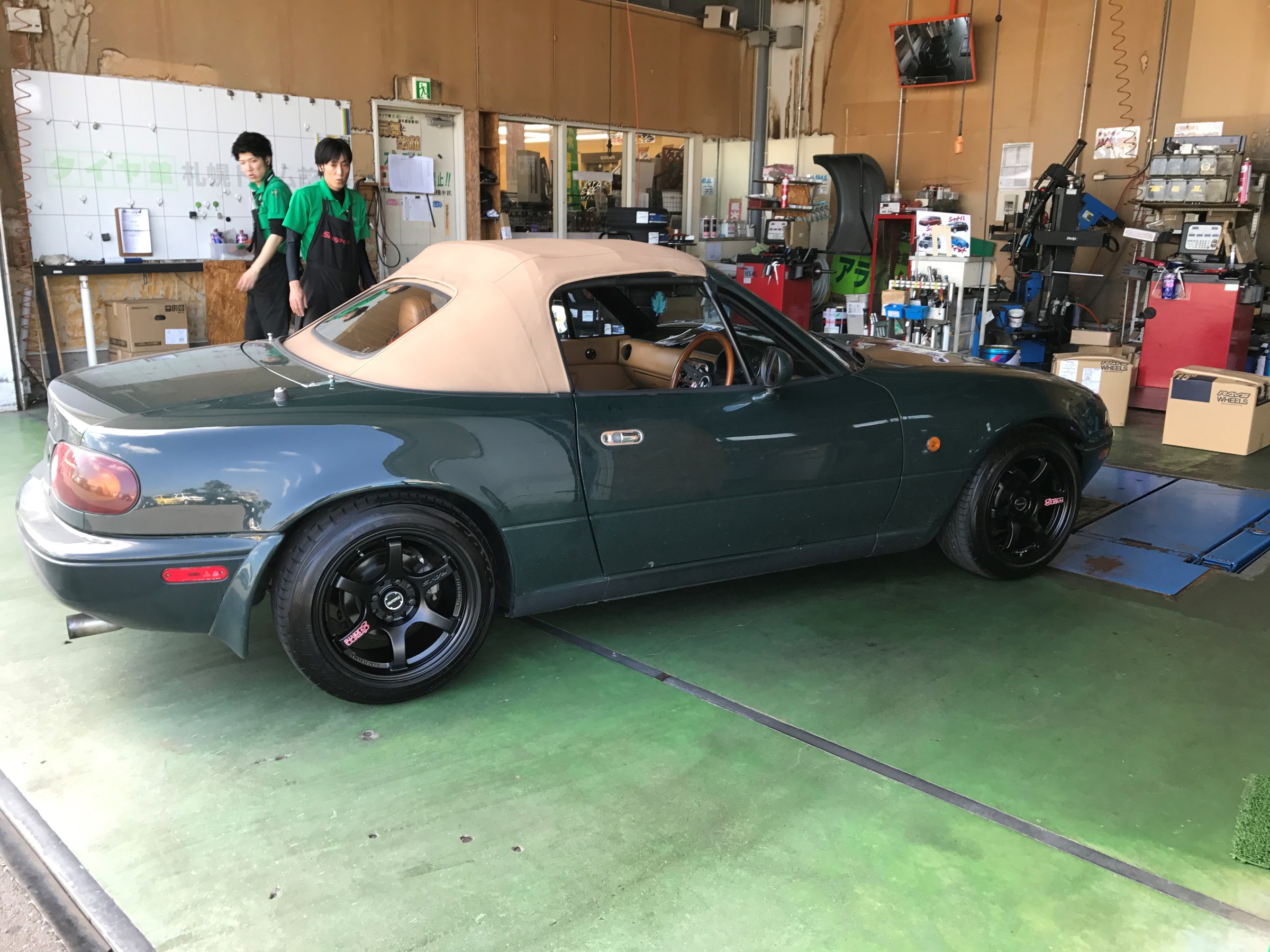 本日はユーノスロードスターに待ちに待ったアルミホイール