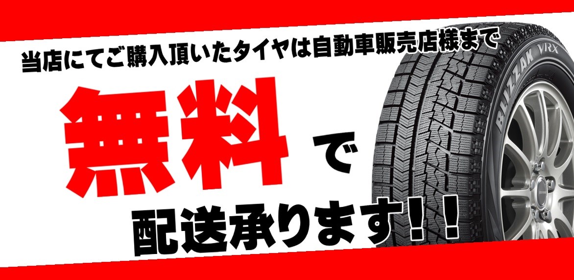 当店では新車購入応援!! ということで当店でタイヤを購入いただいた場合は自動車販売店様まで無料で配送を行っております。 (新車応援!と謳ってますが中古車でも大丈夫です。笑)