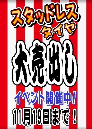 タイヤ館では、ロングランで「タイヤ大売出し」実施中です。