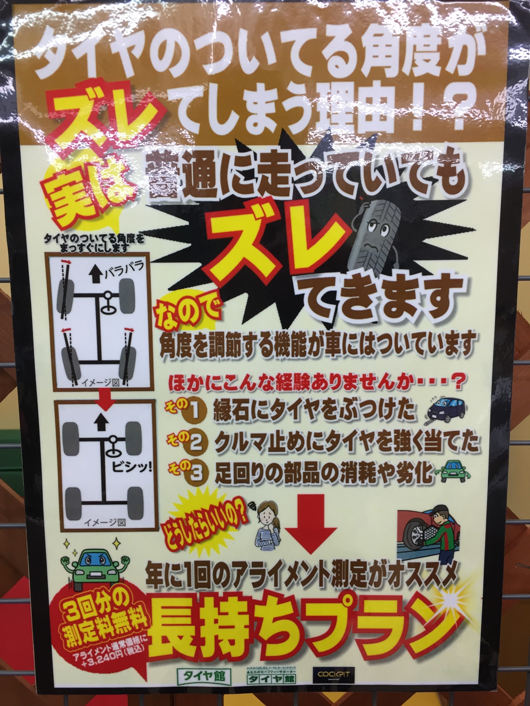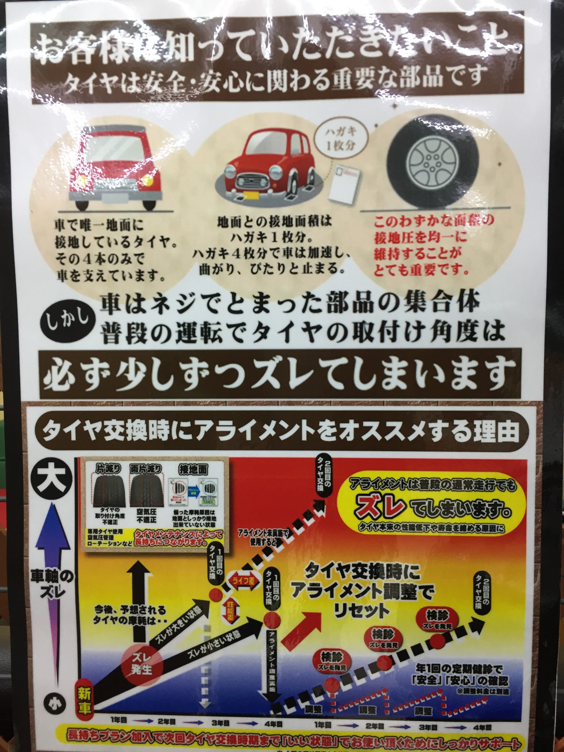 タイヤ交換+タイヤの取付角度の修正『アライメント』♪