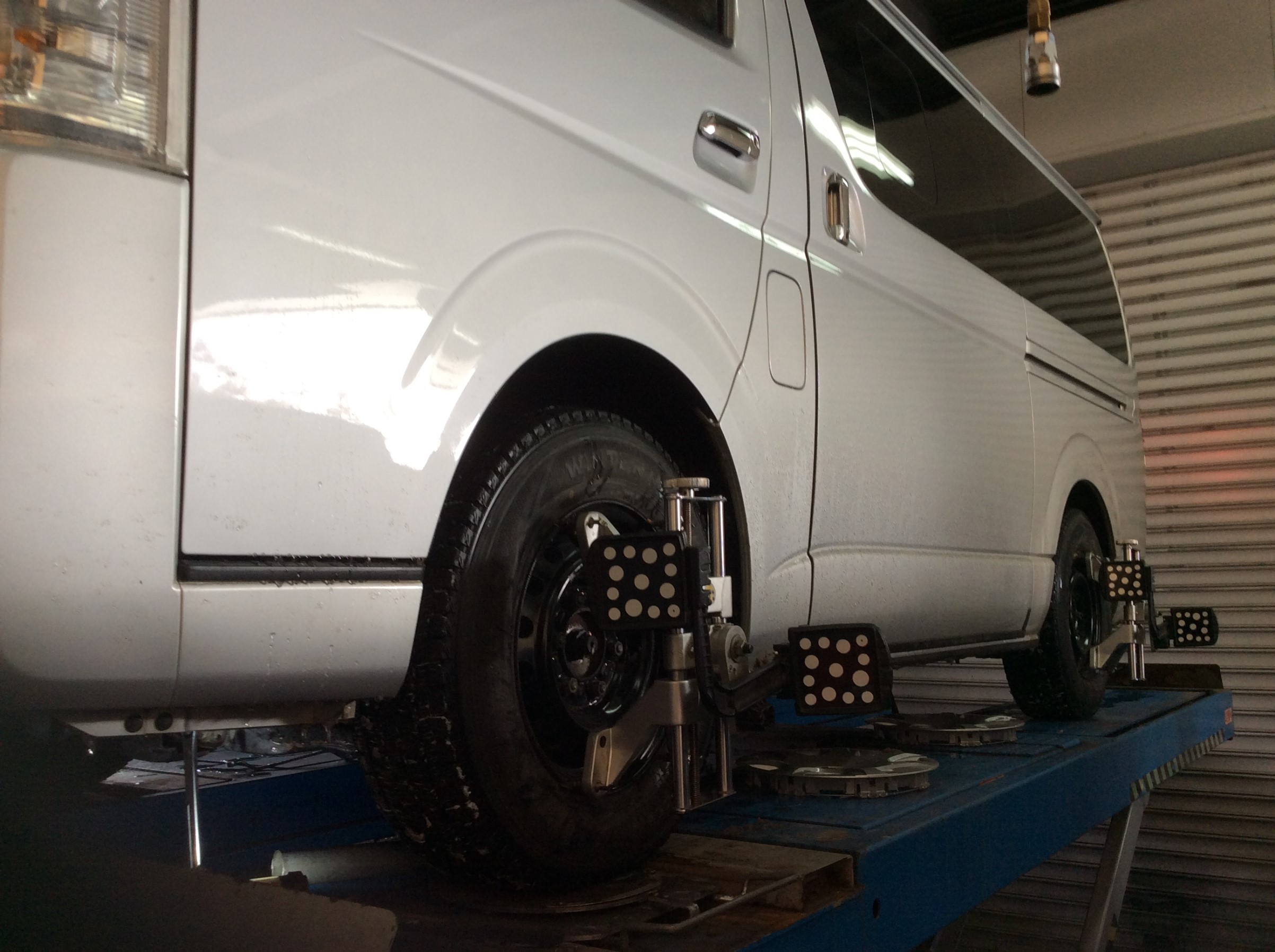 まずは当店、得意のアライメント・・しかも200系ハイエース