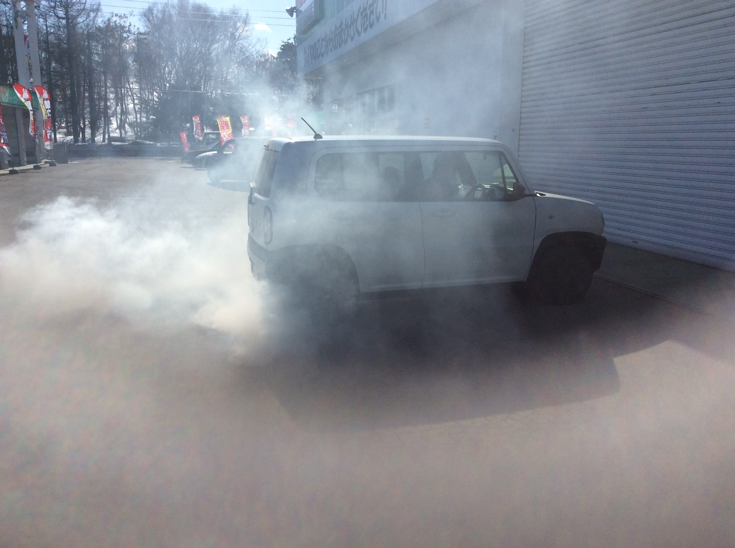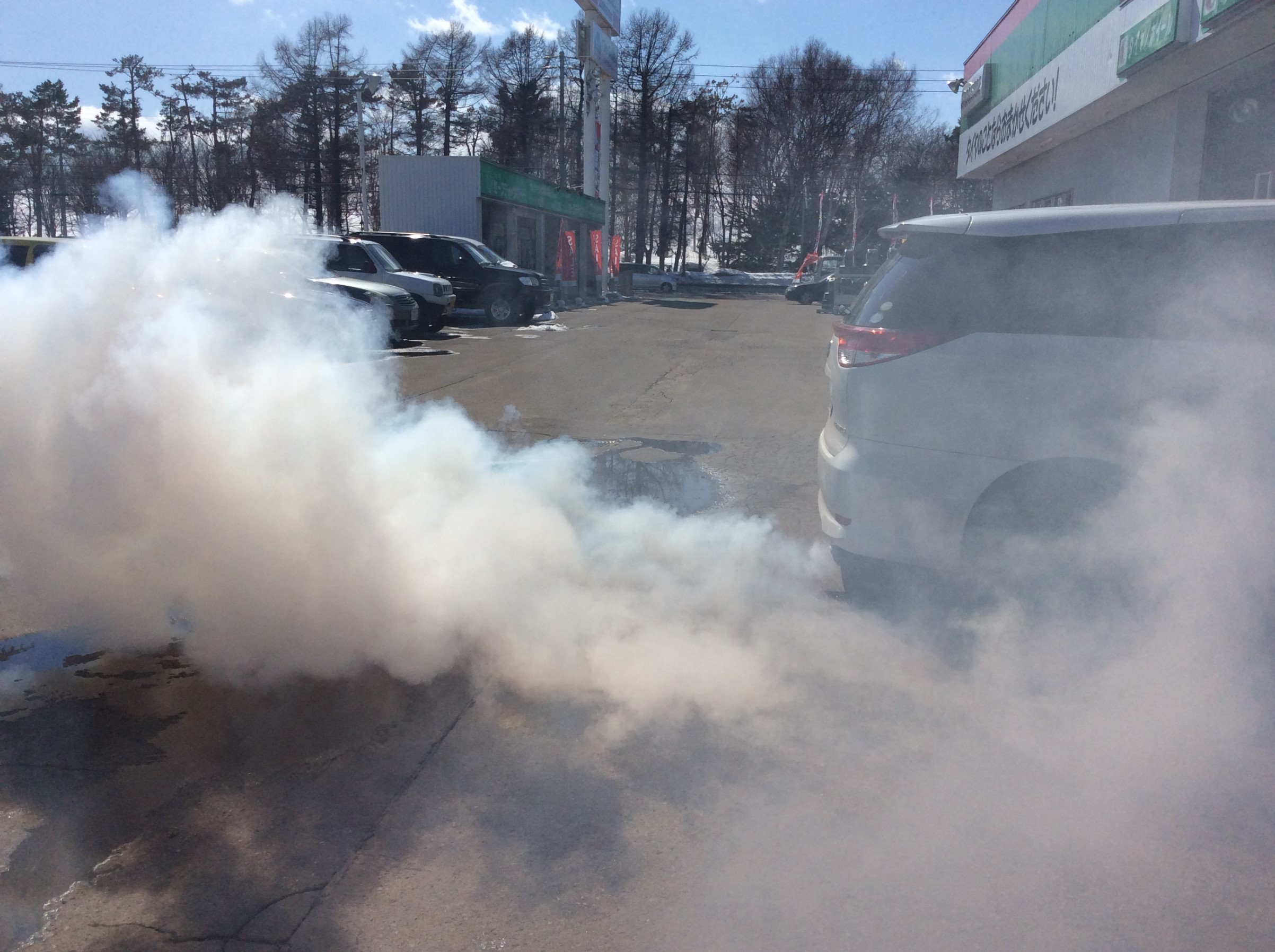 風が強くて・・・煙幕のように