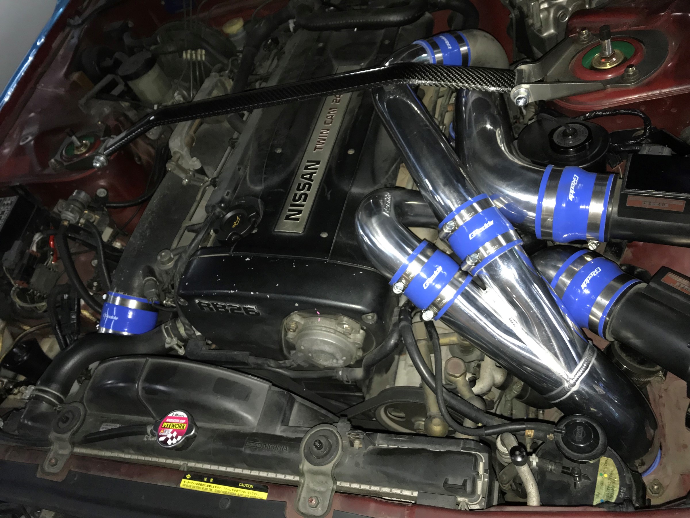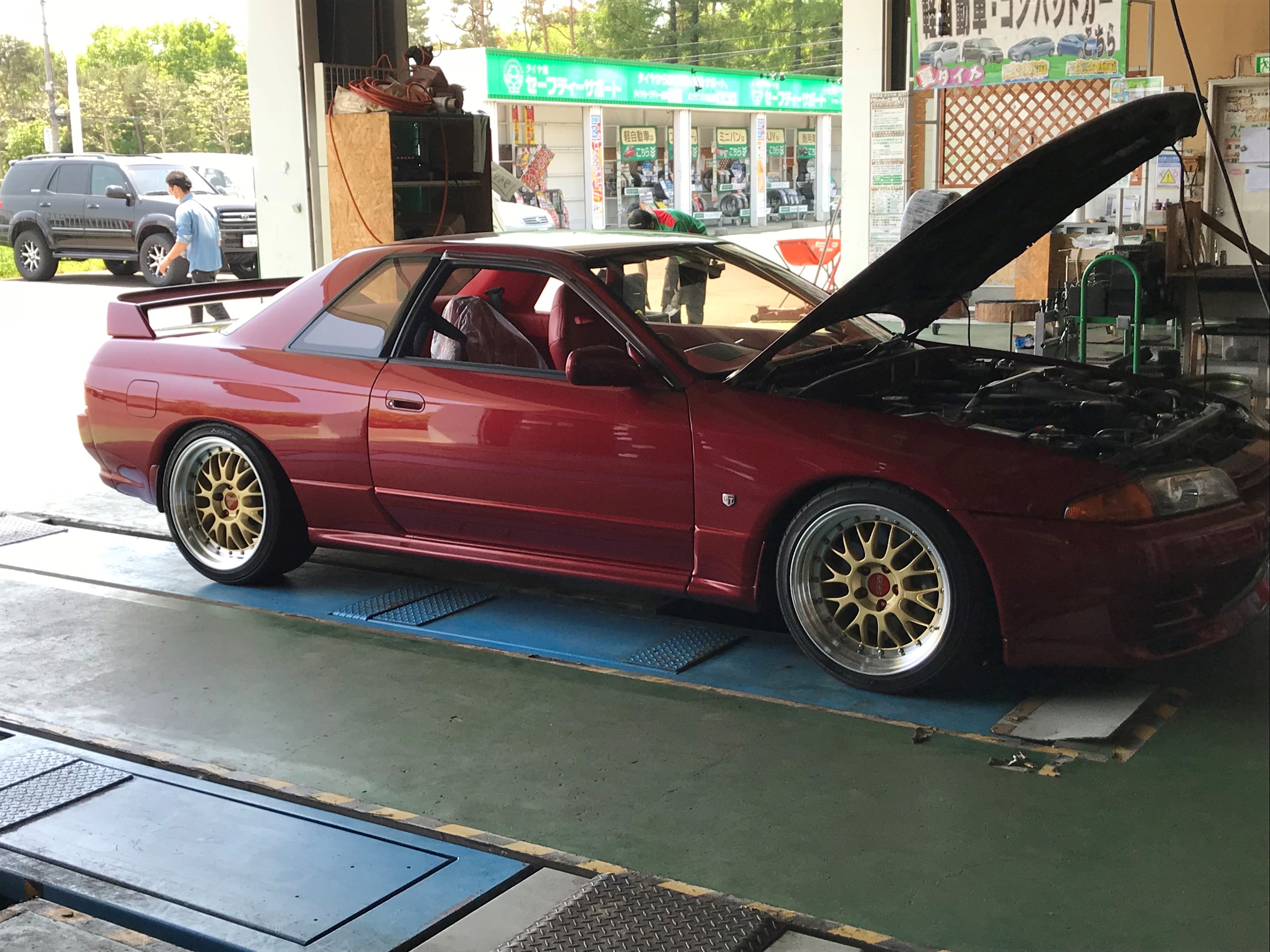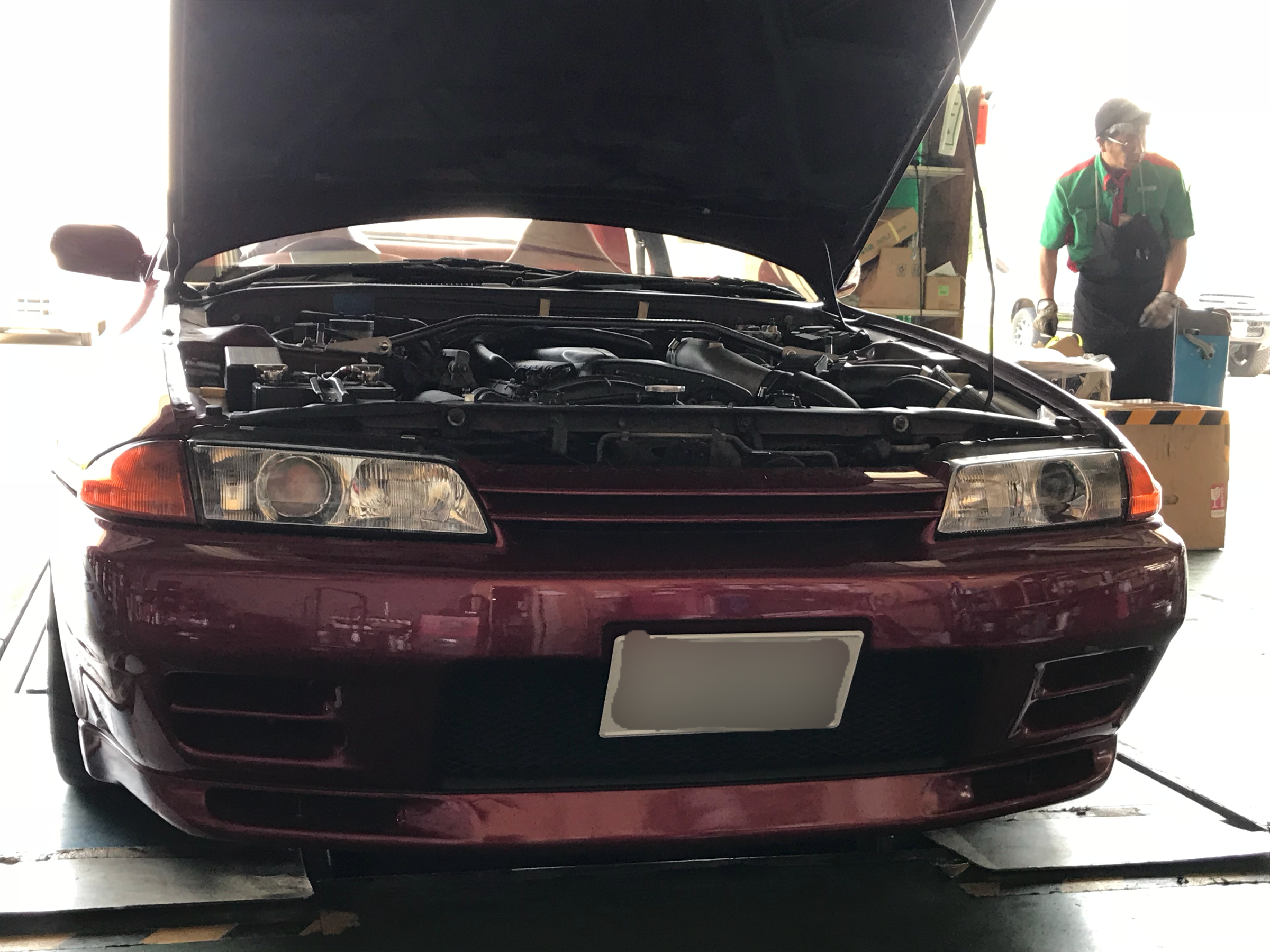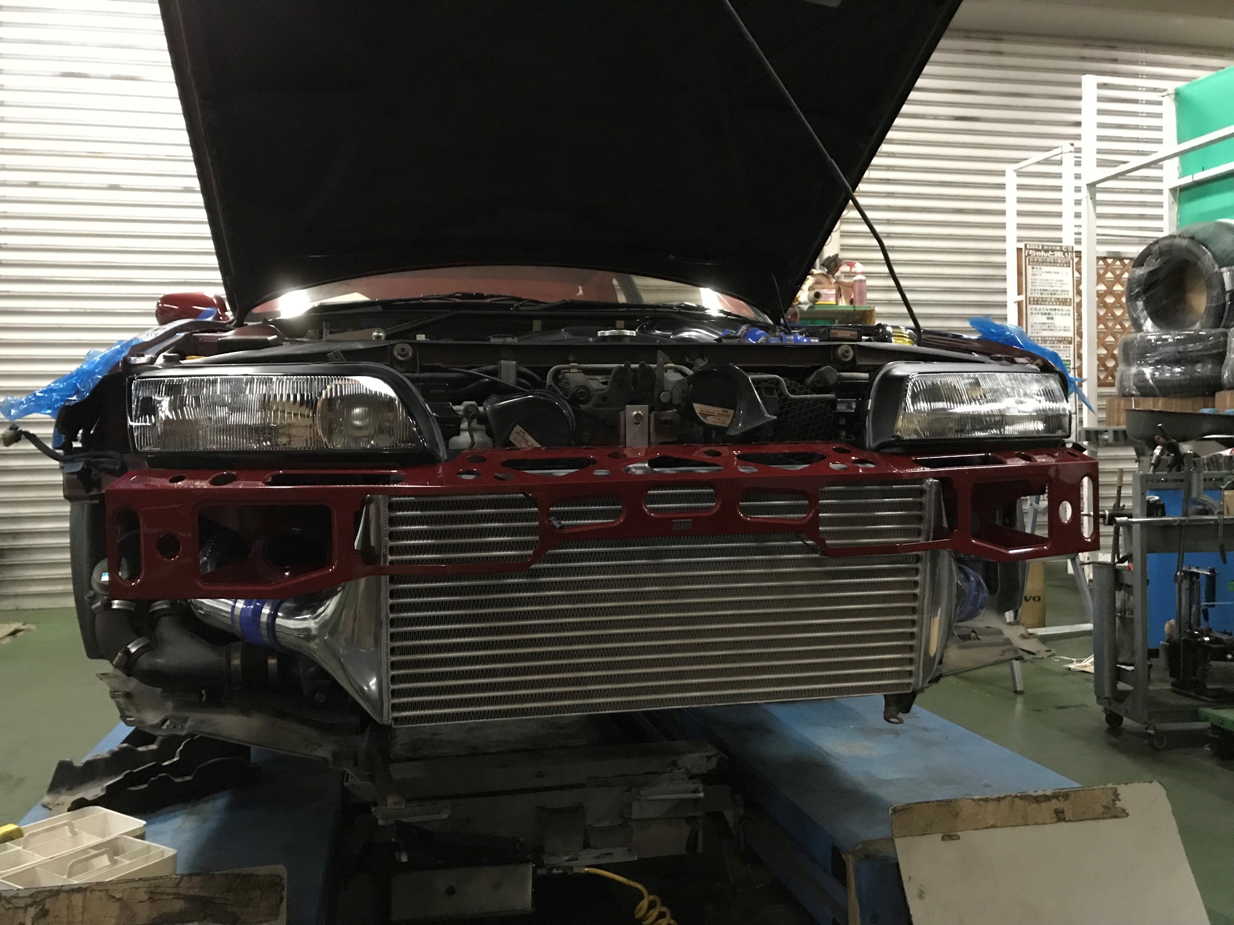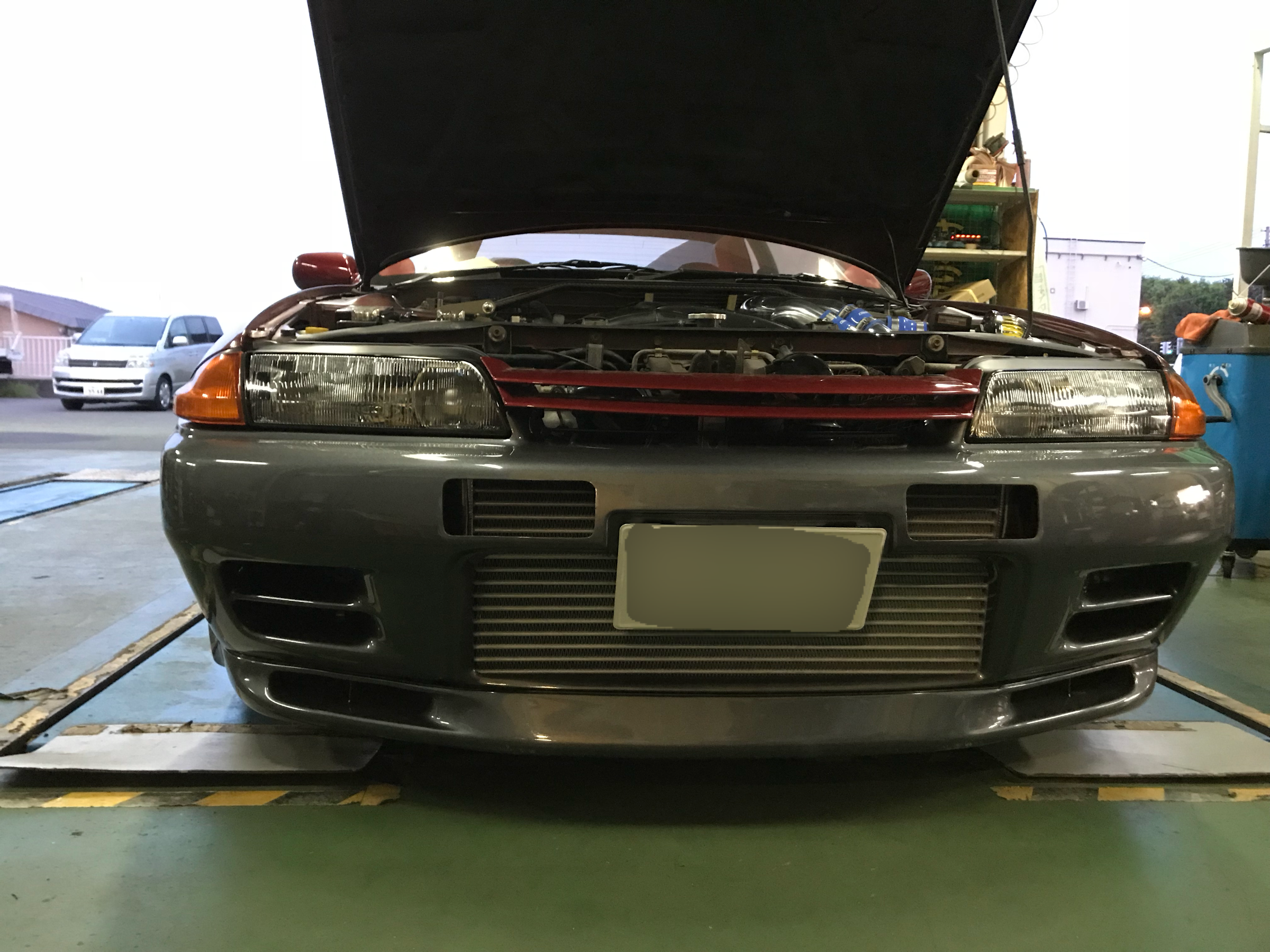 スカイラインR32GT-Rにトラストインタークーラーキット・パイピング・チタンマフラーの取り付けです。