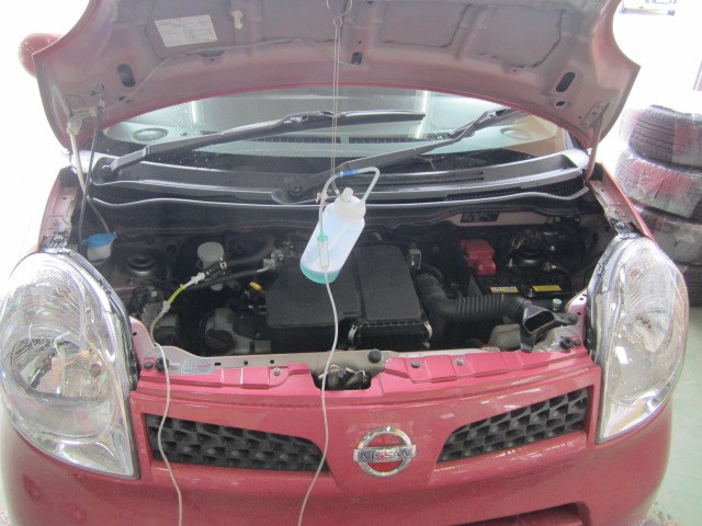 A、不可能ではありませんが・・・ 画像のように専用の施工道具が必要です。 吸入ポイントもお車によって異なりますし、数々の経験をもとに吸入量なども調節しながら行っております。トラブル防止の為、可能な限りは専門店にお任せしましょう。