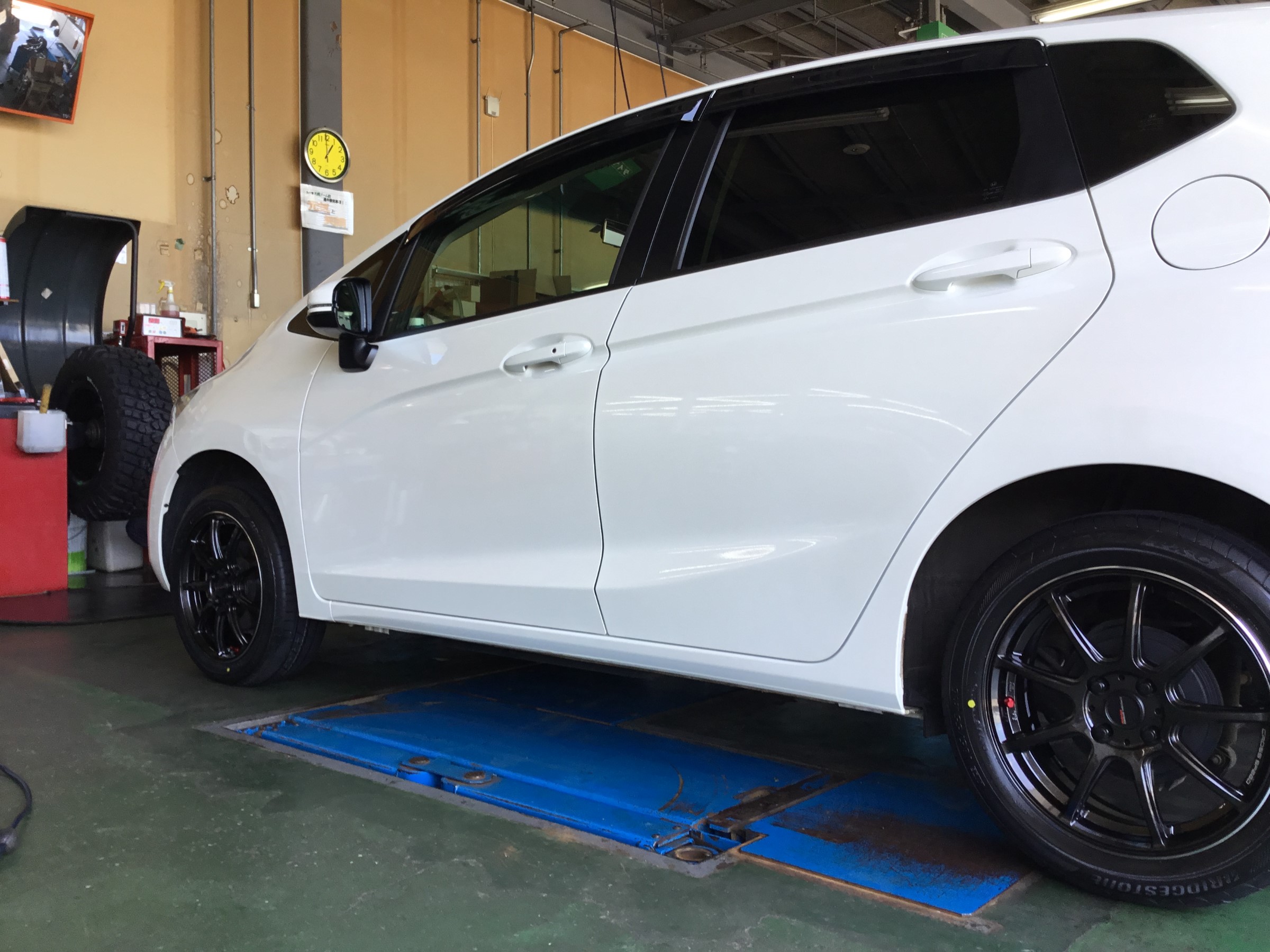 本日は アライメントや用品取付けなどでピットがずっと埋まっている