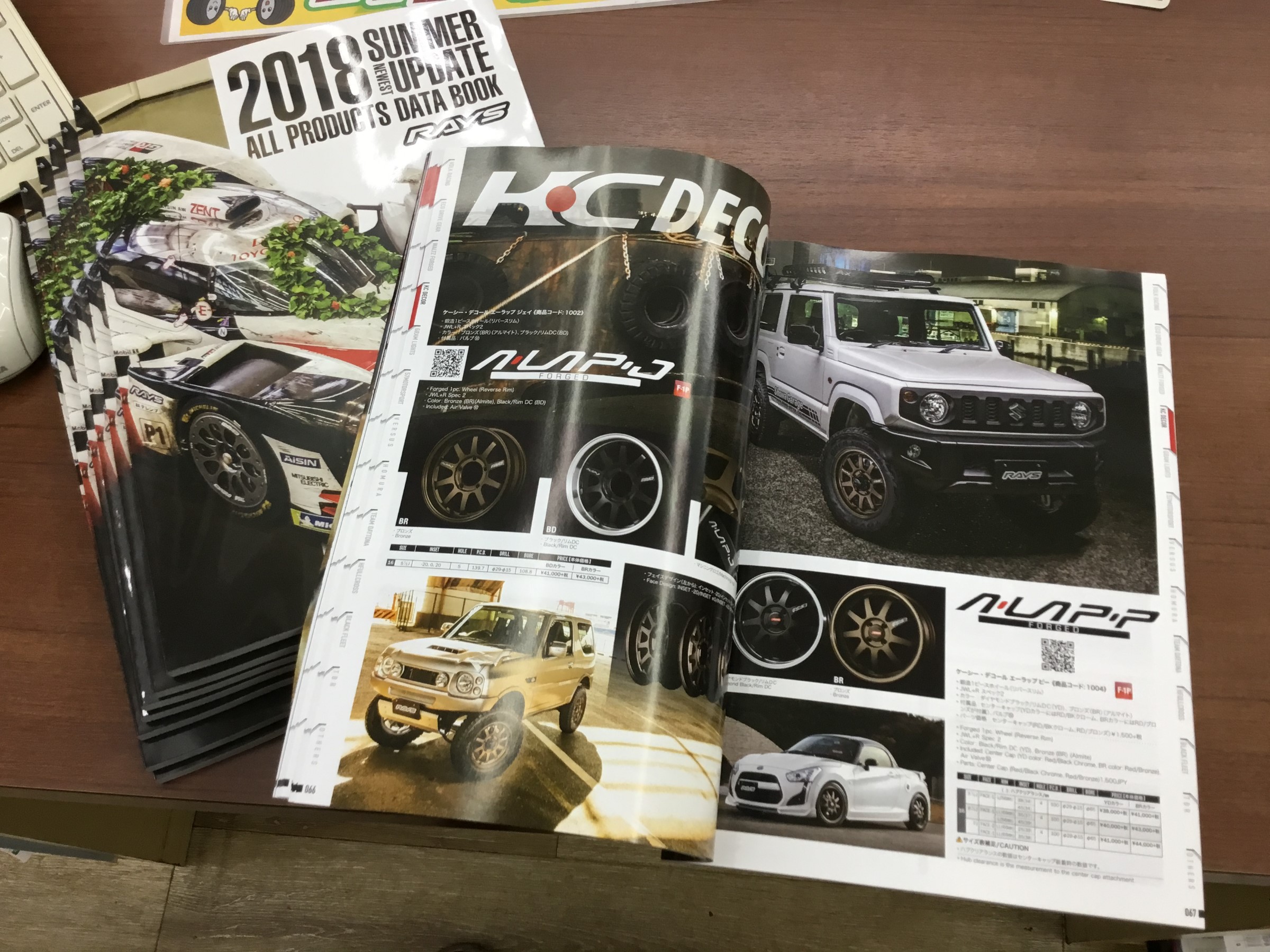 そんな中、RAYSの担当営業マンが休みなのに来店! 車の中に積まれていた2018下期のカタログを強制的にぶんどりました。笑