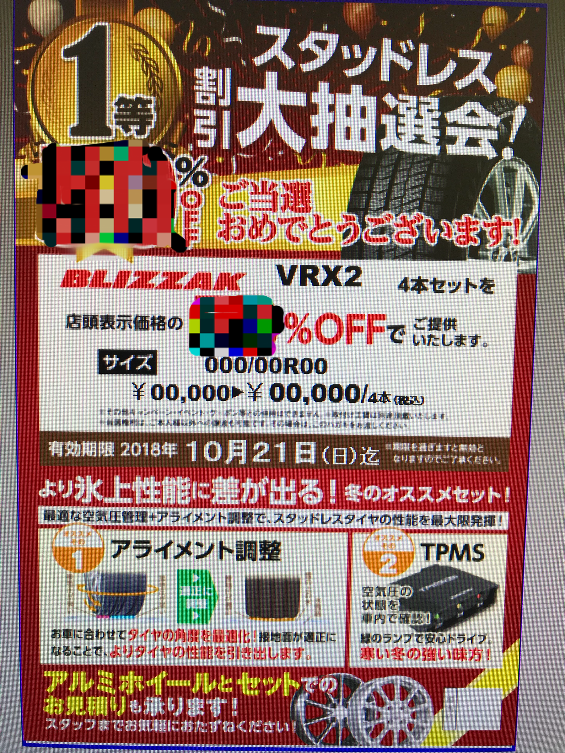 このたびはスタドレス割引大抽選会に沢山のご応募をいただき