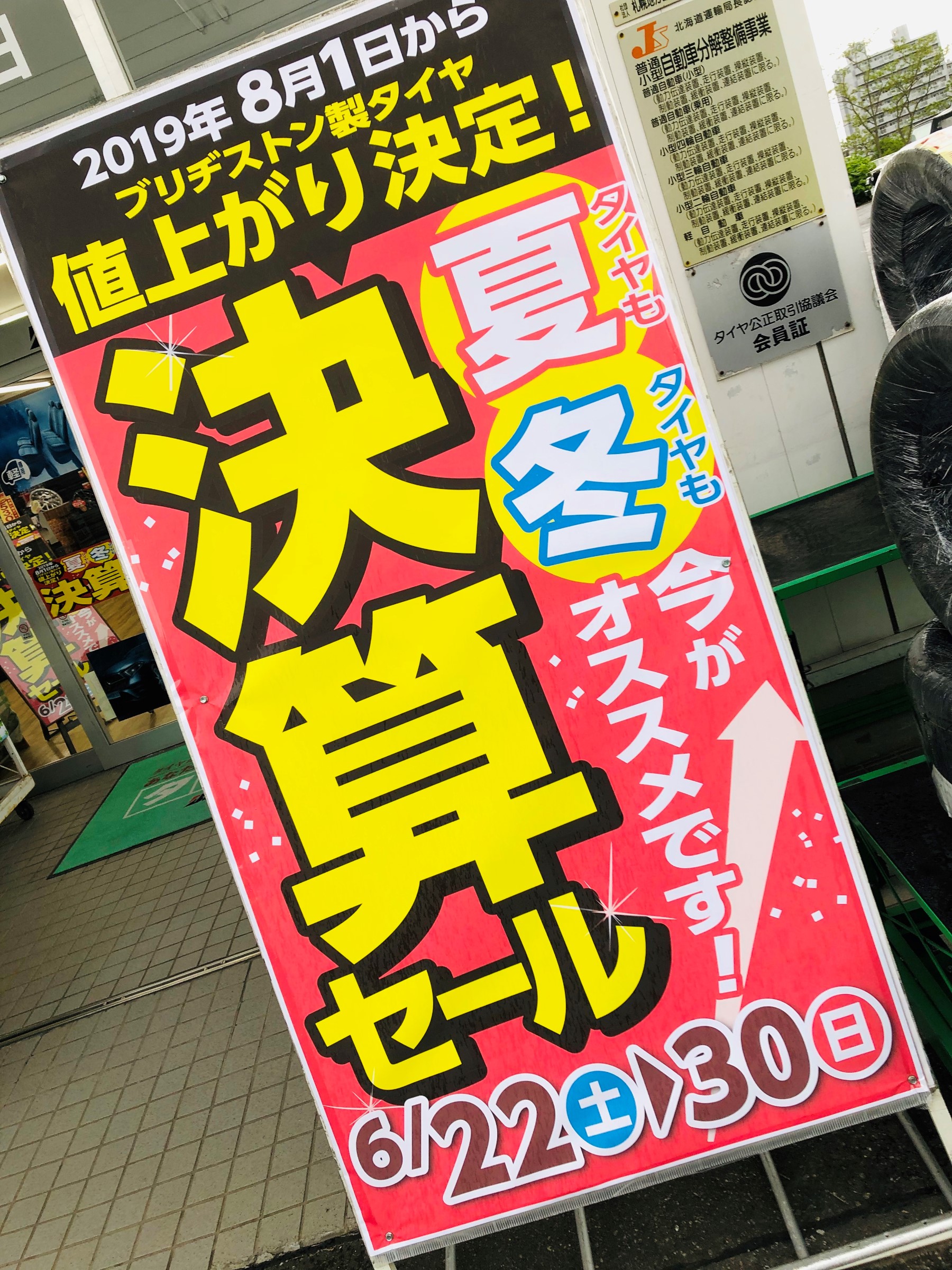 ①8/1ブリヂストンタイヤが値上がりするから!!
