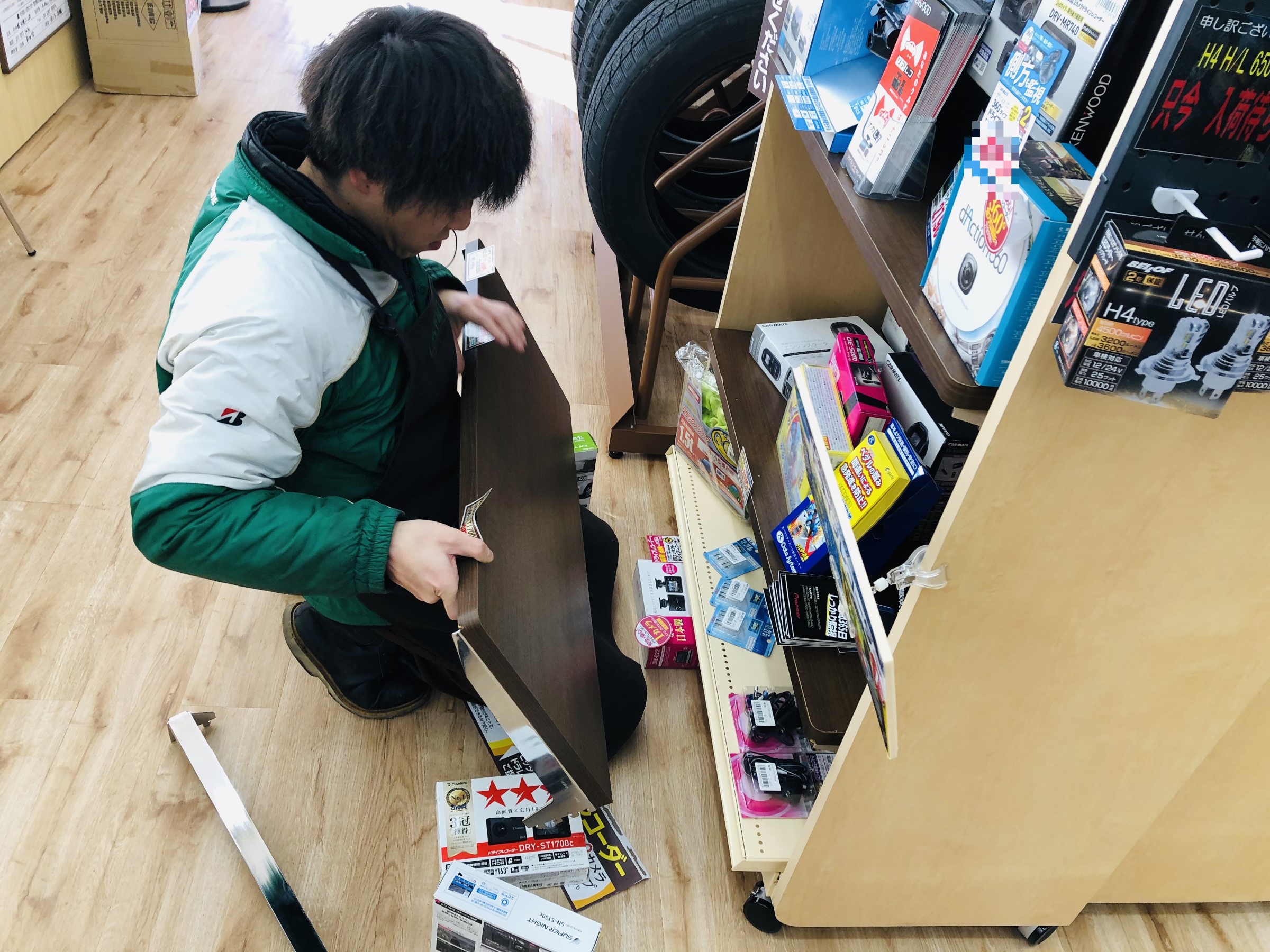 村田さんは、店内、ドライブレコーダーコーナーの見直し