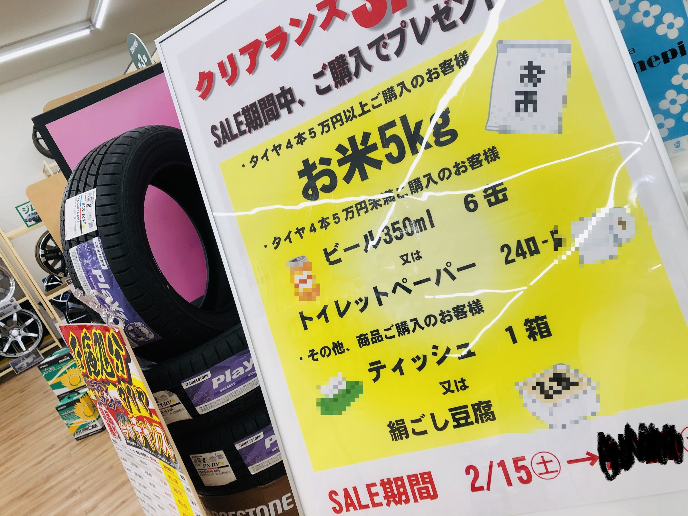 ①タイヤ4本5万円以上ご購入のお客様には