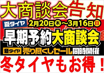 夏タイヤ早期予約大商談会告知!2/20~開催!