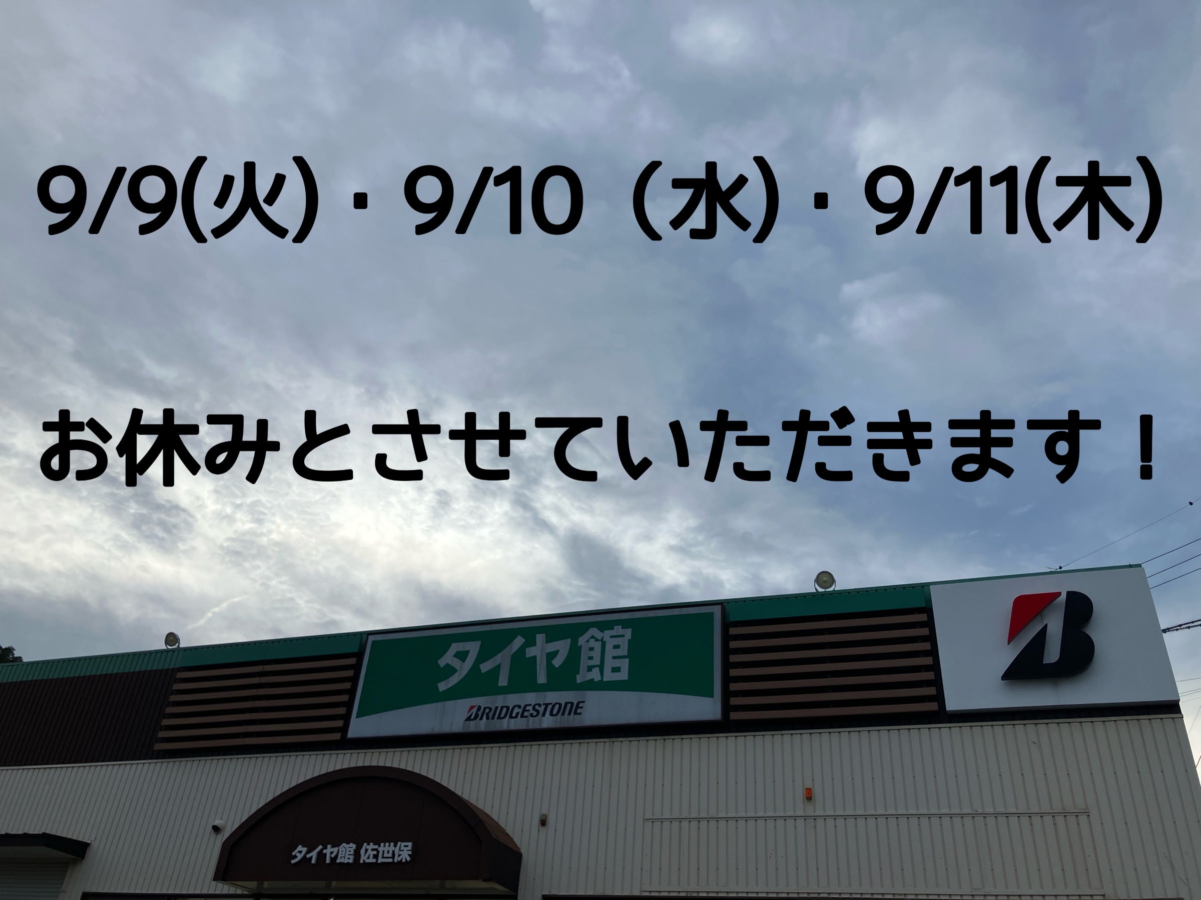 9/9(火) 9/10(水) 9/11(木)の3日間を店休日とさせていただきます。