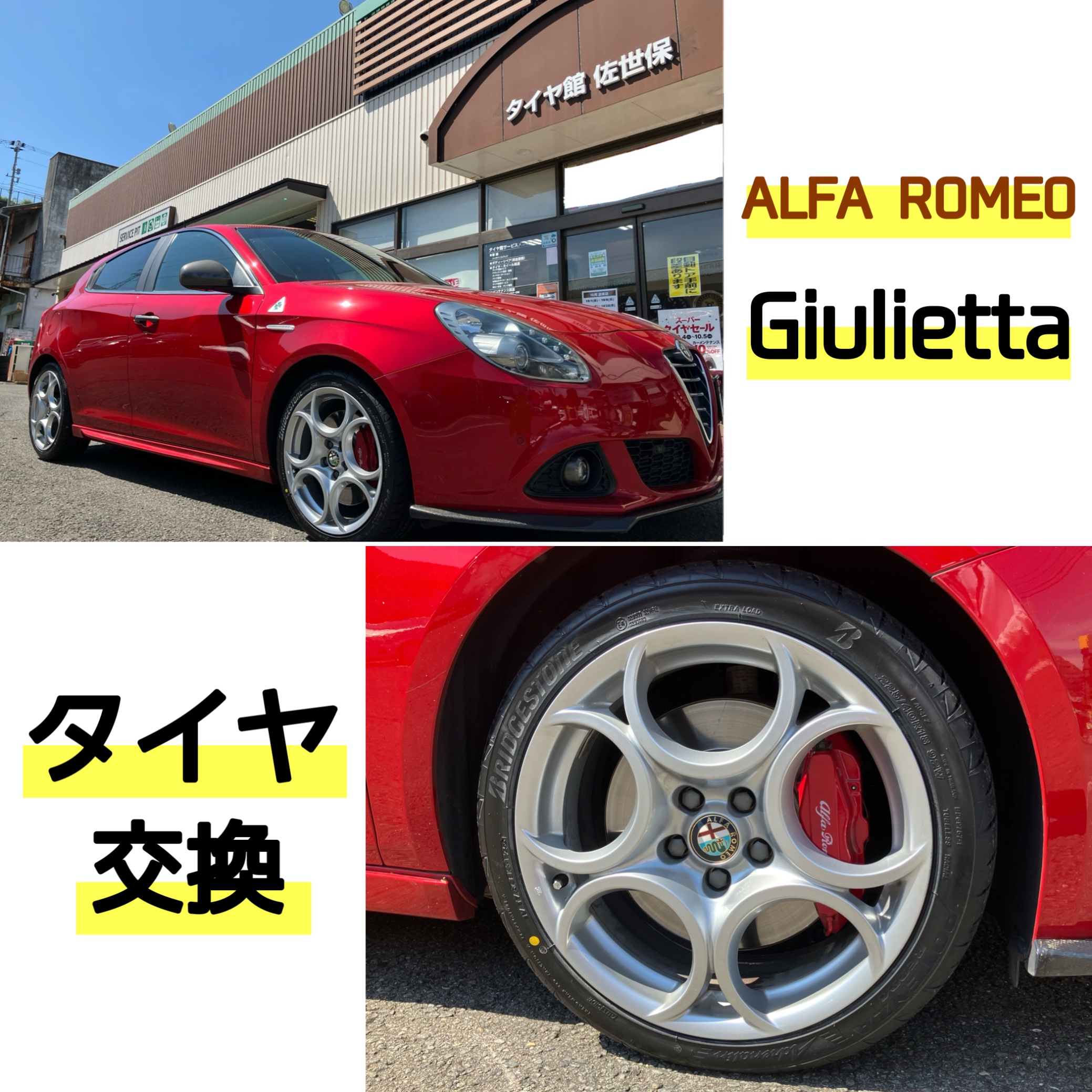 輸入車のタイヤ交換おこなっています! アルファロメオ ジュリエッタ タイヤ交換