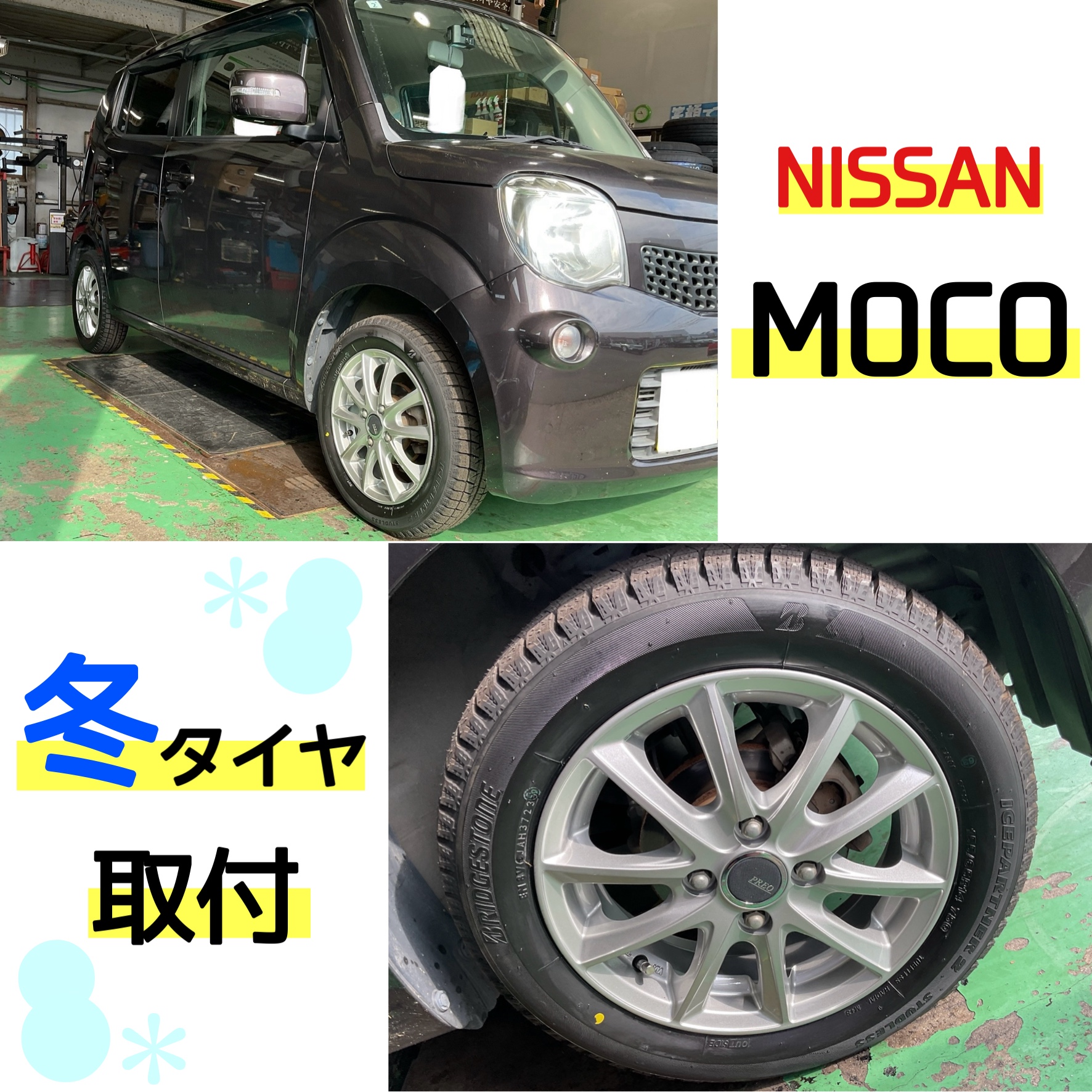 モコ スタッドレスタイヤ&ホイール セット取付