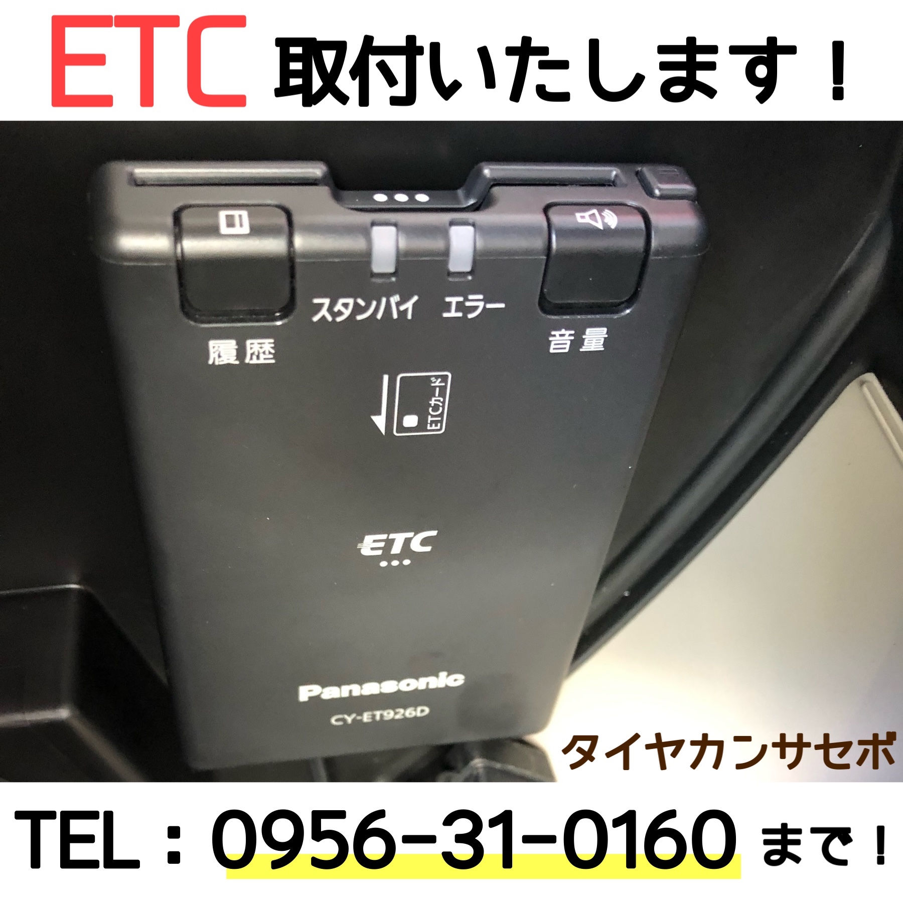 ETC 車載器の取付、セットアップ ポスト 2026年1月15日 こんにちは。 佐世保市日宇町にありますタイヤ館佐世保店です! 当店では ETC 車載器の取付、セットアップ をおこなっております!! 高速道路の通行料金支払い時に ノンストップで通過できたりと 運転中の利便性があがります(^o^) 取付後、セットアップまでおこないますので あとは、お手持ちのETCカードをご準備いただくだけでOKです。 お電話からぜひご予約ください! タイヤ館 佐世保 住所:857-1151長崎県佐世保市日宇町2787-2 電話番号: 0956-31-0160 タイヤ点検・安全点検/タイヤ履き替え/オイル交換/その他ピット作業の予約