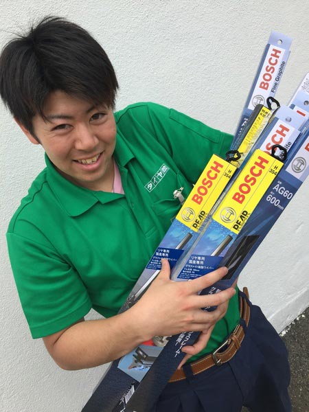 ワイパー届きました(^'^) ポスト 2015年5月20日 お疲れ様です〜!皆さん、そろそろ梅雨の季節ですよね♪皆さんの車のワイパーはしっかり機能していますか?もし、拭き残しや音がしたりしていたら視界が悪くなり危険なので是非!タイヤ館に寄ってください♪ワイパーの在庫、沢山ありますよ♪皆さんの安全の為に点検しますので安全点検の来店お待ちしております!♪ 担当:えじたつ