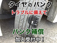 いつ起こるかわからない 「タイヤのパンク」 もしものトラブルに備えて… パンク補償の加入をオススメします! パンク補償は、 ブリヂストン製タイヤを4本購入時に加入することができます。 加入から、2年間補償となります。 釘がささってパンクした、 縁石にあててバーストしたなど タイヤのトラブ...