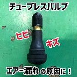 タイヤの空気圧補充をする部分 【チューブレスバルブ】 タイヤと同じくゴム性のため 次第に劣化していきヒビがでてきます。 タイヤの空気が漏れる原因となりますので タイヤを交換する場合には 同時に交換することをおすすめします。 当店での、タイヤ交換の際は チューブレスバルブ の交換をおこな...