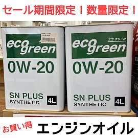 こんにちは、タイヤ館佐世保店です タイヤ交換と一緒に エンジンオイル交換 ぜひいかがでしょうか 只今、セール期間の特価オイルを販売しております。 省燃費性能に優れたエンジンオイル「eco green(エコグリーン)」 を通常よりお安く販売しております。 新車充填時のオイルと合致した品質を持ち...