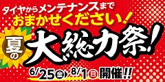 夏の大感謝祭! 8/1までとなり、残すところ あと1週間きりました。 タイヤ館アプリにて、 タイヤ4本をご購入時につかえる得クーポン配信中!! 最大一万円引きにとなります! 8/1まで となっておりますので タイヤ館アプリを登録してGETして下さい!