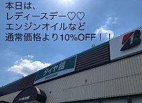 こんにちは。 毎日、暑いですね~ 皆様、体調にはくれぐれもお気を付けください! さて、本日は、 レディースデーの日です。 女性のお客様は、 エンジンオイル交換など通常価格より10%OFF! さらに、粗品を差し上げております。 クルマのメンテナンス、お忘れなく!