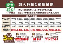 こんにちは。お知らせです。 タイヤ館にてブリヂストンタイヤを 4本ご購入された際に 「パンク補償」に加入することができます! 加入から2年間補償します。 もしパンクなどしてしまった場合、 タイヤ4本すべて新品のタイヤに交換できます。 加入特典として 〇タイヤローテーション 〇窒素ガス補充...
