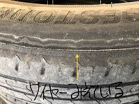 タイヤのワイヤーが見えています! タイヤのワイヤーが 見えたまま走行するのは 危ないですので早めに交換しましょう! 雨など水分がタイヤのワイヤーに 徐々に侵食して錆びやすくなるため バーストを起こす危険性が高くなります。 タイヤの外側はワイヤーが見えていなくても 意外と気づきにくい タ...