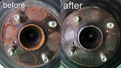 タイヤ館でできる「ハブ 防錆 施工」 ハブのサビは、最悪の場合、タイヤが外せなくなったり、 ホイールにサビが侵食することも。 サビを防止するために、サビをお掃除して防錆コーティングをさせていただきます。 タイヤを取り外した時の写真(before 防錆施工後の写真(after 半年から1年ほどの効力...