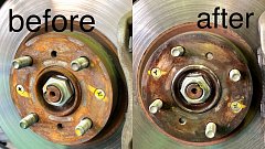 ハブ防錆施工をさせていただきました写真です。 before → after サビがでていましたので掃除をしまして 防錆のコーティング剤で仕上げました。 効力は、半年から1年程。 今年は、雪が降りました。 雪道にまかれる 「融雪剤」は、 サビやすい原因にもなります。 ハブ部分のサビが進行してしまうと 最...
