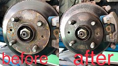【 ハブ防錆 】 タイヤを取り外した時の写真(before) と防錆施工後 (after) の写真です。 サビをおとして、防錆のコーティングをすることで厄介なサビを予防する効果があります。 なかなか気づきにくいサビ。進行すると最悪の場合、固着してタイヤが外せなくなることも。 点検や金額などスタッフま...