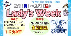 只今、女性の方向けのイベント 【レディース ウィーク】 おハガキでのご来店、 誠にありがとうございます!!(^-^) レディースウィーク は、 7日まで開催です! バッテリー交換やオイル交換など 通常価格より10%offとなりますので メンテナンス時期にきているところは ぜひこの機会をご利用ください...