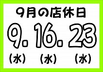 9/23水曜日 店休日です