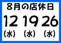 8/19 水曜日は店休日です