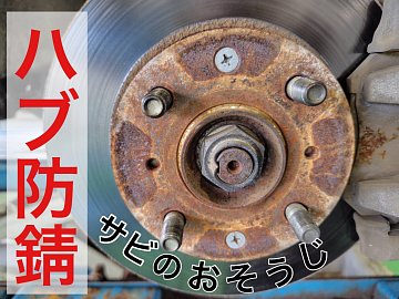 今回の作業事例はコチラ ◎ハブ防錆 ハブ←とは!? お車からタイヤ(ホイール)を外した時に見える部分! 実はここが!サビやすいところです! ココのサビが進行していくと お車にホイールを取り付けるときに、 サビがあることで ピッタリと取付しにくくなったり、 ナットを外してもホイールがくっつ...