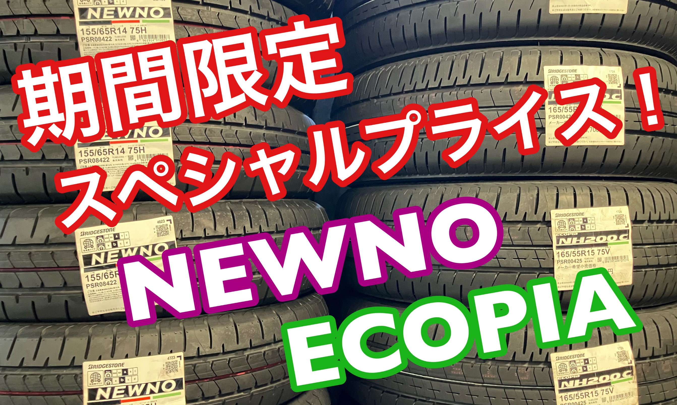こんにちは、 タイヤ館佐世保店です。 タイヤ BRIDGESTONE ECOPIA タイヤ BRIDGESTONE NEWNO が期間限定スペシャルプライスとなっております! 対象タイヤサイズは、 155/65R14 165/55R15 175/65R15 185/60R15 185/65R15 195/65R15 期間は、10/20までです。 ご相談お待ちしております!