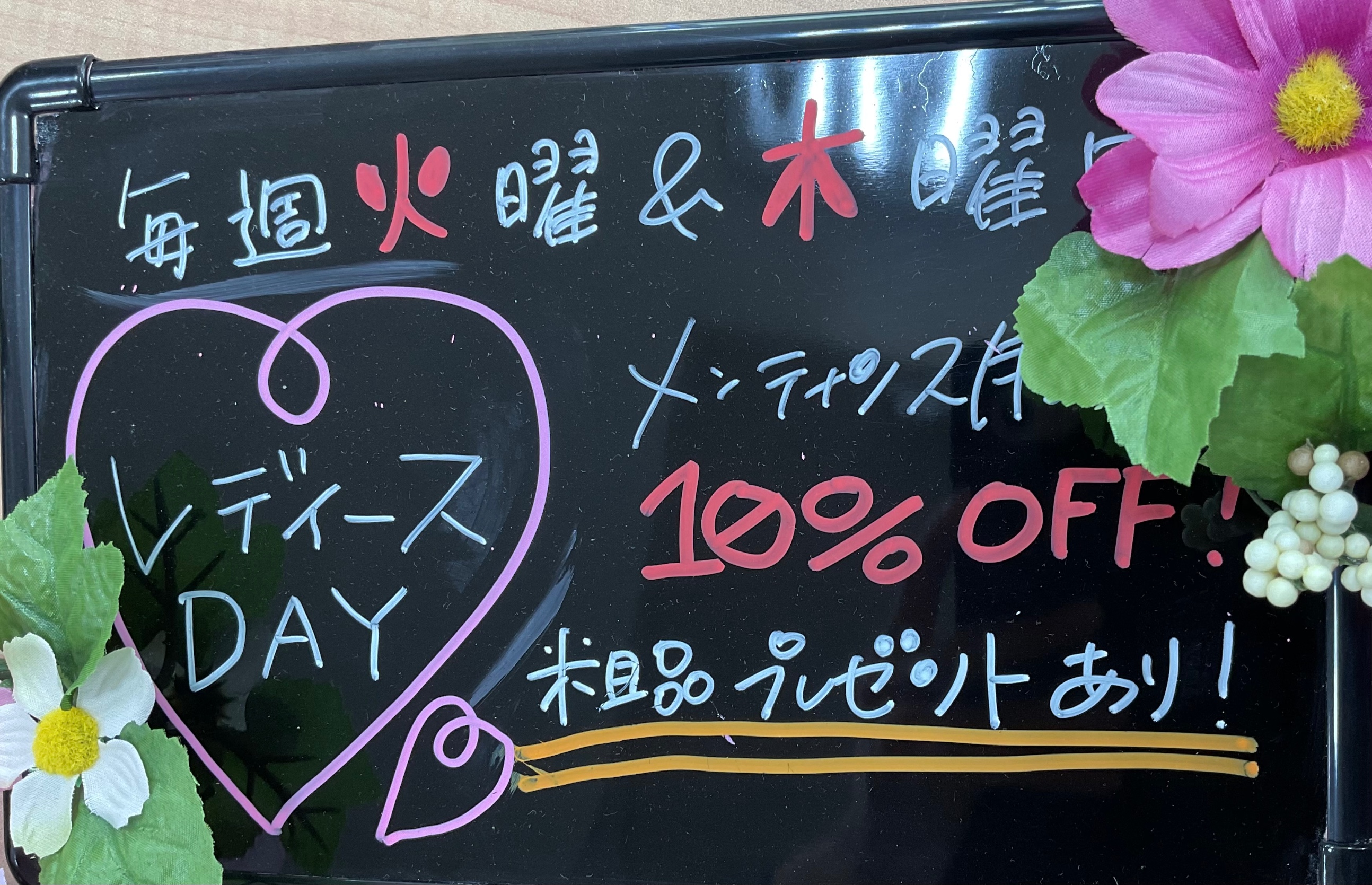 こんにちは、 佐世保市日宇町にありますタイヤ館佐世保店です。 9月も開催します‼︎ 毎週火曜、木曜日 レディースデー レディースデーは、 女性のお客様にお得な日となり エンジンオイル、バッテリー、 ワイパー、エアコンフィルターなどの メンテナンス用品が 店頭価格より10%引きとなります。 ま...