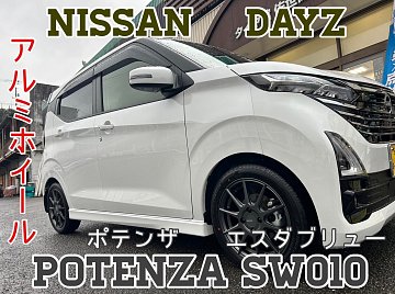 今回の作業事例はコチラ! ◎ アルミホイール 取付 ⬛︎クルマ: NISSAN DAYZ ⬛︎ホイール: BRIDGESTONE POTENZA SW010 ( ブリヂストン ポテンザ エスダブリュー ) ※カラー:フラットダークガンメタリック ブリヂストンタイヤショップ限定販売カラー ※サイズ: 15×5J4 100 inset45 数あるお店のなかか...