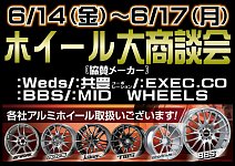明日からホイール展示会開催です! 6/14(金)~6/17(月)の期間、 タイヤ館佐世保店にて メーカー協賛ホイール展示会をおこないます! ぜひお立ち寄りください!