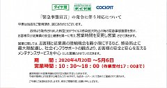 タイヤ館佐世保店をご利用下さるみなさまへ いつもご愛顧いただきありがとうございます。 この度、政府より発令されました新型コロナウイルス感染拡大防止の為の 緊急事態宣言を受け、お客様及び従業員の安全と健康を第一に考え、 4/20(月)より営業時間を変更 させていただくこととなりました。 営...