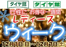 今日から12月スタート! イベントといえば、 タイヤ館佐世保店にて 1~7日の一週間開催しています ★レディースウィーク★ 女性の方にお得な一週間です! 毎日が通常価格より10%オフ★ オイル交換 バッテリー交換 ワイパー交換 エアコンフィルター交換 などなど お得に交換しましょう♪ ぜひタイヤ...
