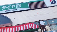以前よりご紹介しておりますので 知ってる方もいらっしゃるかもしれませんが、、、 タイヤ館佐世保店では 9/14.15.16の3日間 、周年祭イベント 開催! それに向けて準備の方も着々とすすんでいますっ! 店長は幕の取付を、、、☆彡.。 暑い中ありがとうございます。 野田スタッフと村田スタッフは 看板のは...